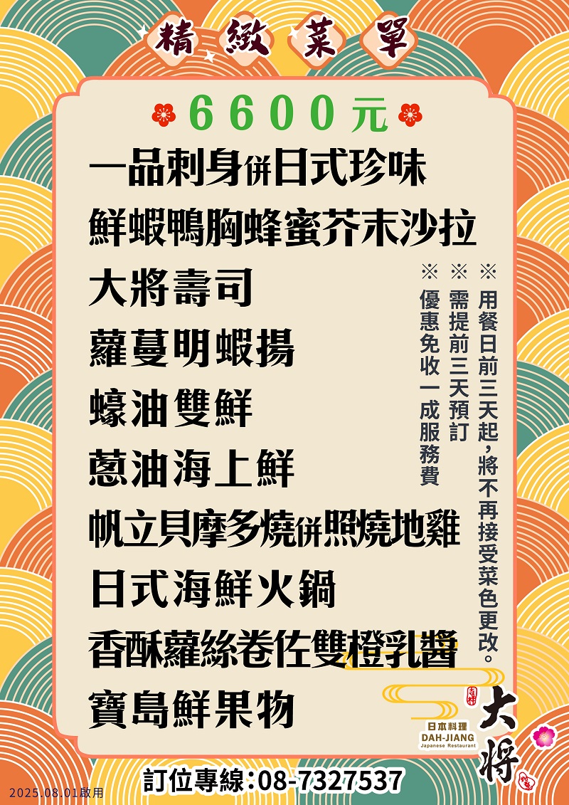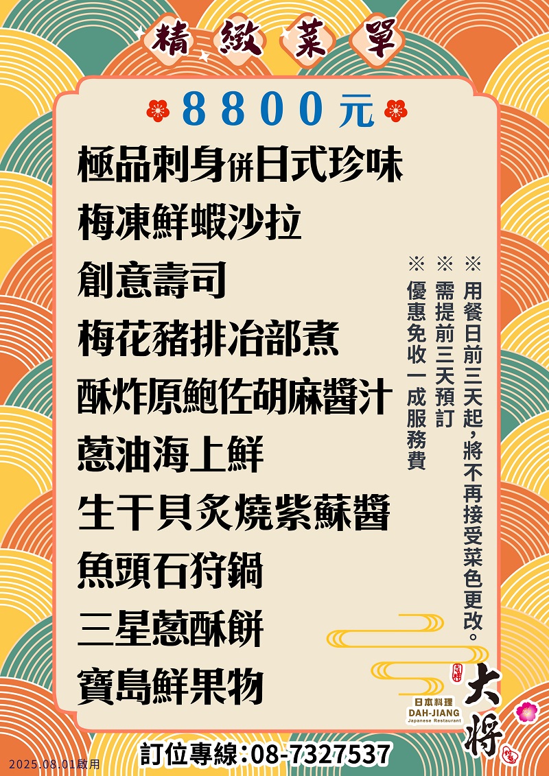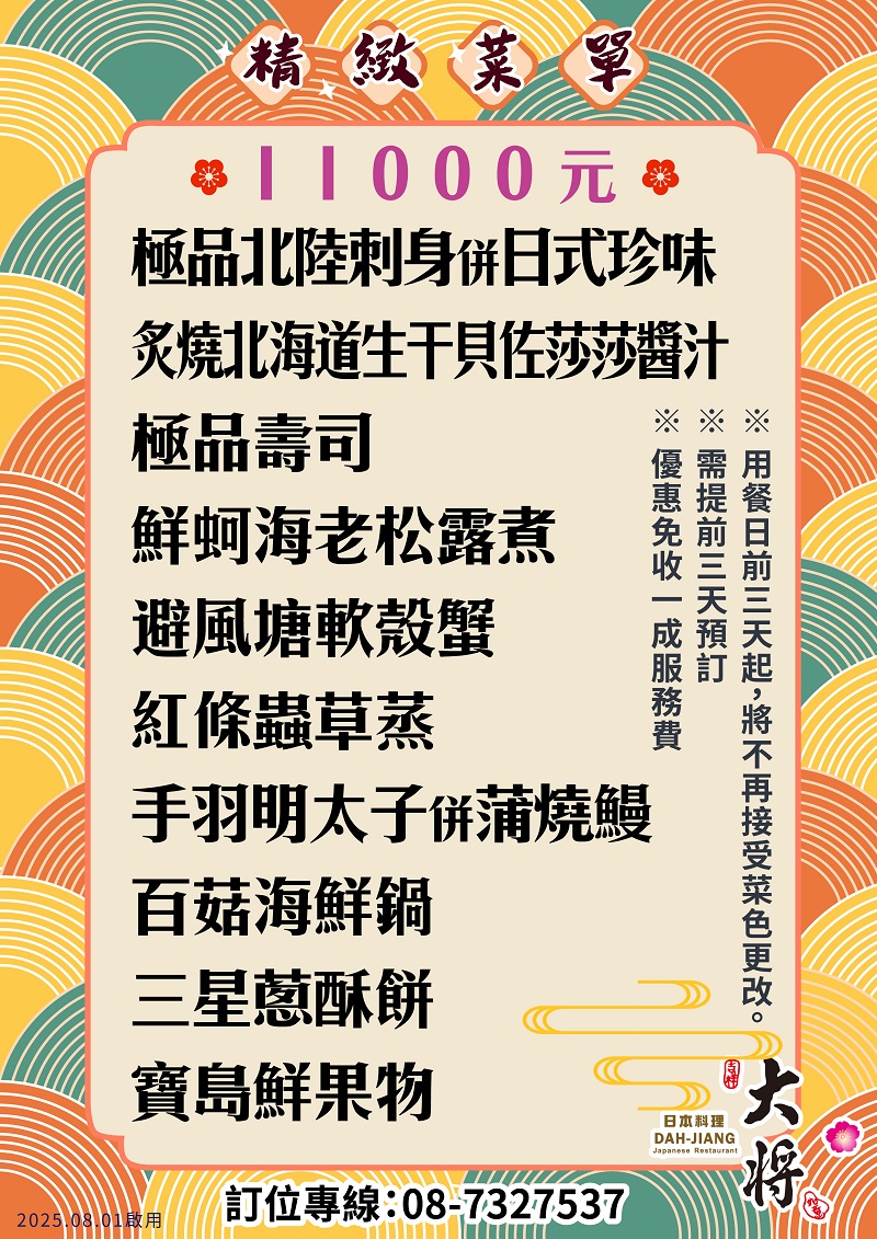 本店精心搭配當季時令鮮味,全新嚴選菜色