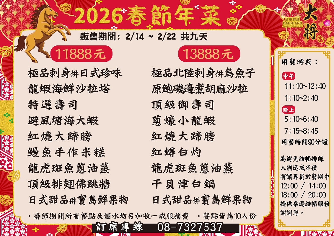 邀您闔家蒞臨本店共享美饌,歡度溫馨美好的圍爐時光。